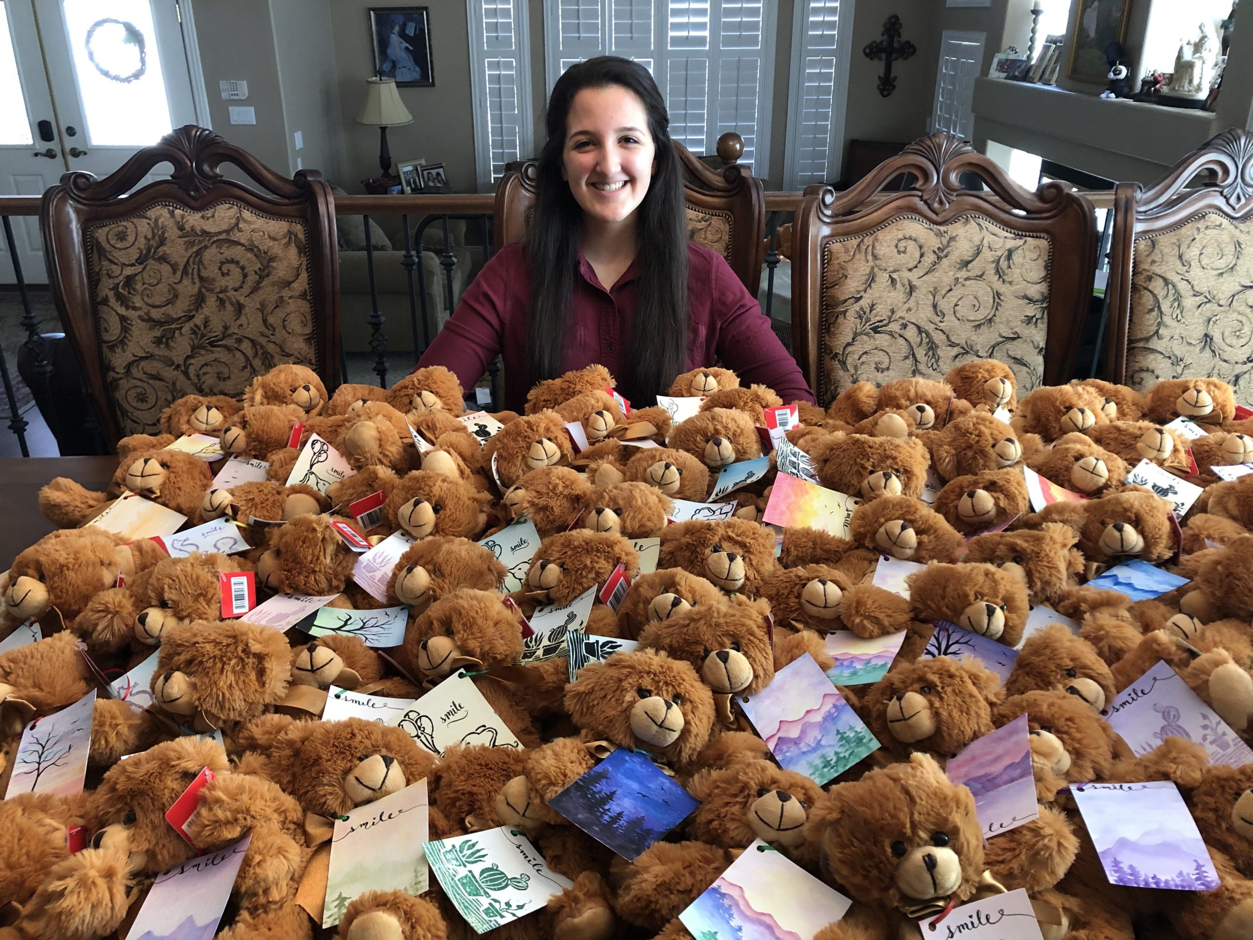 “Love Bears All Things” is a small, ongoing project I began during my senior year of high school. I created dozens of miniature paintings with motivational quotes written on the backs; I then used ribbon to tie these paintings to teddy bears, which I then donated to the children at Sunrise Children’s Hospital in Las Vegas, Nevada.